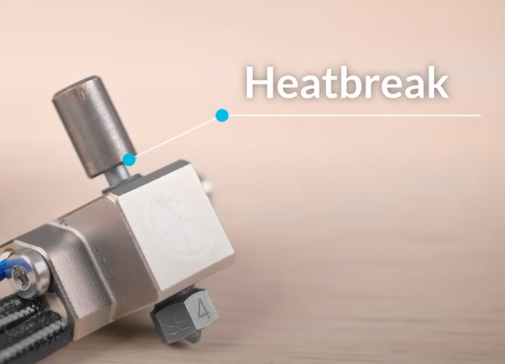 It is named “Bi-Metal Heatbreak” It has two components with different thermal conductivity. It is composed of 2 parts. The use of two metals ensures that heat transfers freely within the hot side, but cannot move quickly to the cold side