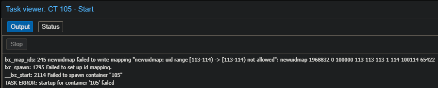 f"lxc.idmap: g {gid+1} {100000+gid+1} {65535-gid}\n")Modify PVE /etc/subuid and /etc/subgid
